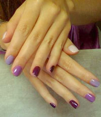 Выглядит всё это, конечно, эффектно и профессионально, особенно если оттенки подобраны подходящие. Но вот, как кажется редакции MyCharm, всё это трудно достижимо. Ведь желательно, чтобы все оттенки были в одном цвете, но разной тональности. Такого разнообразия лаков не всегда в салонах то найдешь. К тому же, важно, чтобы, если блестки – то везде, перламутровый эффект – тоже, то есть текстура должна быть одинаковая. Сложно это, сложно. Или нужно верхнее покрытие обязательно, чтобы сделать ноготки однородными по свечению и глянцу.