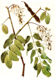 Препараты из акации белой обладают желчегонным, жаропонижающим, отхаркивающим, мочегонным, спазмолитическим, гипотензивным и лёгким слабительным свойствами.