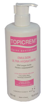 Я решила начать с вот этого продукта: Emulsion Ultra-hydratante TOPICREM®, Гипоаллергенная увлажняющая эмульсия для лица и тела. Производитель - Лаборатория Нижи (Laboratoires Nigy), Франция.Эмульсия – пожалуй, наиболее комфортная форма увлажняющего крема. Это крем на воде, а не на масле, поэтому никакого лишнего жира и никакой тяжести от продукта. Невесомый и отлично впитываемый. Мне нравятся такие текстуры! Особенно в теплое время года, а также в межсезонье, они наиболее дружественны для кожи лица и тела.