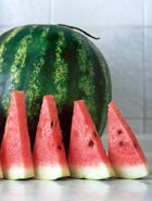 - Мякоть арбуза можно так же нарезать тонкими ломтиками, вытолкнуть остриём спички семена и наложить ломтики на 20 минут на лицо. Умыться кипячёной водой комнатной температуры.