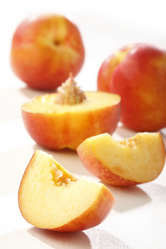 Ну а ещё, персик улучшает питание кожи, удерживает влагу в ее клетках, предохраняя кожу от морщин, притом как при применении внутрь, так и в виде масок для кожи. Мякоть плодов персика очень сочная, ароматная, освежающая, питательная, легко усваивается. Чтобы избежать нарушения водно-солевого обмена, обязательно включайте в меню продукты, богатые калием: курагу, изюм, бананы, картофель в мундире, яблоки и др.