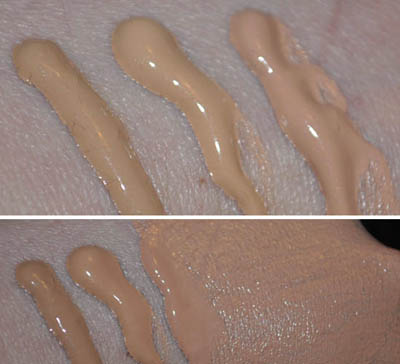 Слева направо: оттенки 303 True Nude, 200 Soft Beige, 201 Classic Beige. Фото со вспышкой. Видите, какой глянец и как бы свечение изнутри у каждой капли?