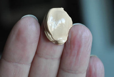 Оттенок Beige: слева – хорошо растушеванный, в центре – толстый слой, справа – среднее покрытие