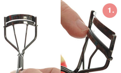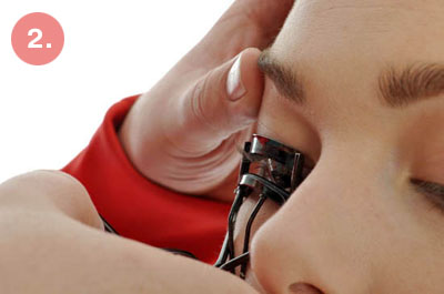 Шаг 2. Поднесите курлер к глазам, металлическая деталь должна быть к линии роста ресниц как можно ближе.