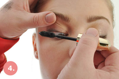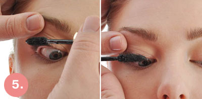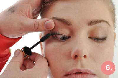 Шаг 5. Затем визажист красит зигзагообразными движениями, тщательно прокрашивая между ресницами. Это делает ресницы толще и гуще.