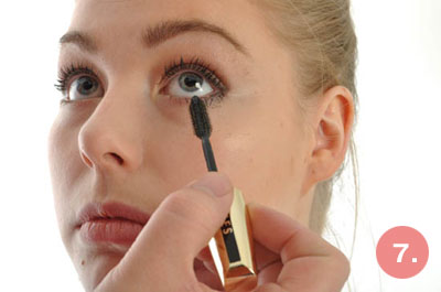 Шаг 6. Не забывайте короткие реснички по краям глаза. Снова макните щеточку в тушь и добавьте продукта коротким ресничкам, это придаст взгляду задорности и флирта, как бы «откроет» глаза.