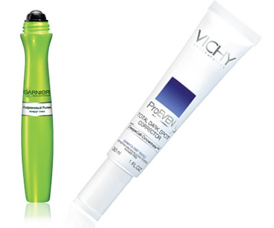 Роликовый гель Garnier, крем ProEven Daily Dark Spot Corrector от Vichy