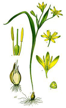 Гусиный лук мохнатый, или жёлтый, или Гагея жёлтая – Gagea lutea – многолетнее луковичное растение из семейства лилейных. Высота прямого стебля гусиного лука не превышает 10-12см. Редко стебель поднимается в высоту до 25см. Листья маленькие линейные.