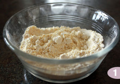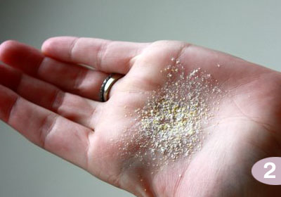 Шаг 2: Отмерьте по 2 столовые ложки каждого ингредиента: кукурузный крахмал, кукурузную муку, соду и овсянку. Смешайте все вместе в миске, это и будет ваш сухой шампунь.