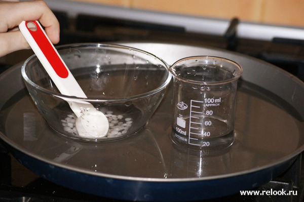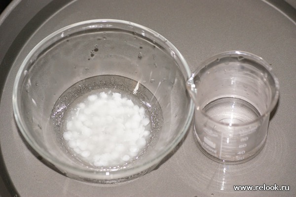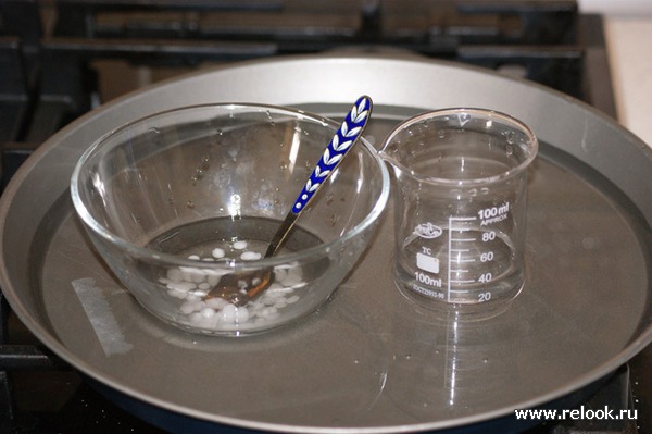 затем, можно увидеть, как, по мере нагрева, плавится эмульгатор