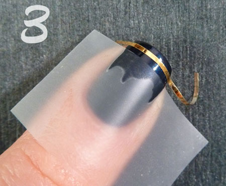 Затем просто приклеиваем к ногтю получившуюся полоску, как будто это скотч. Края «ленты» отрезаем кусачками для кутикулы. Дизайн закрепляем верхним защитным покрытием.