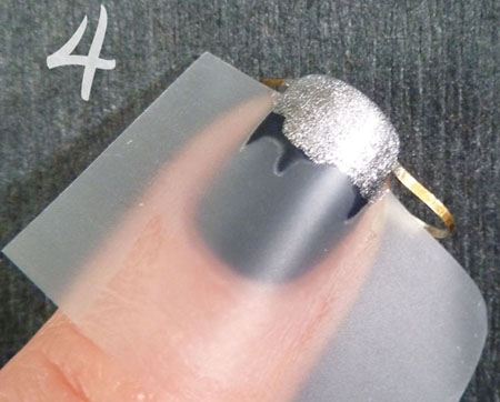 Шаг 5. Осторожно снимите скотч. Внимание: не ждите, пока лак сильно просохнет, снимайте сразу после нанесения серебряного лака.