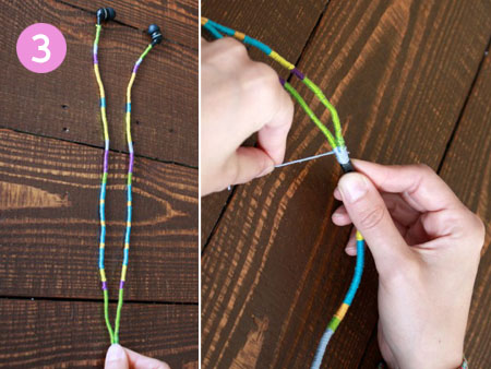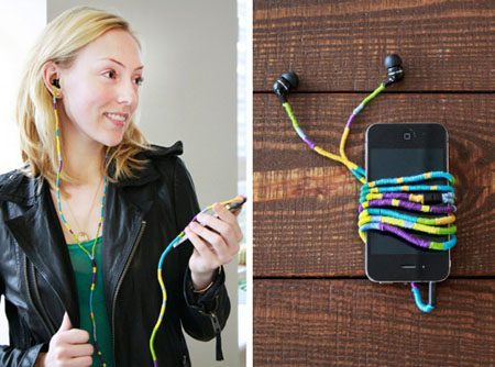Шаг 3. Оберните поочередно разными цветами нитей все наушники, и стильная вещица готова.