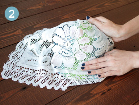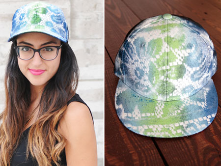 Шаг 2. Когда бейсболка высохнет, покройте её куском тюля. Сделайте это аккуратно, чтобы вся поверхность была закрыта тюлем.