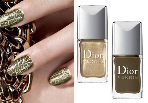 - пара от Dior золото + растрескивающийся хаки, кракелюры получаются не как обычно в виде равномерных трещин, а под змеиную кожу;