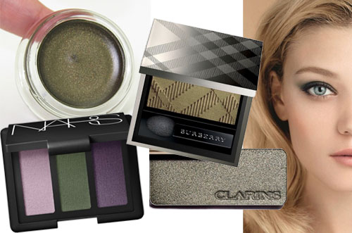 Макияж глаз в оттенках хаки – второй хит Осени-2012. Причем защитный зеленый смело кладется на все веко, либо в комбинации с бронзой.