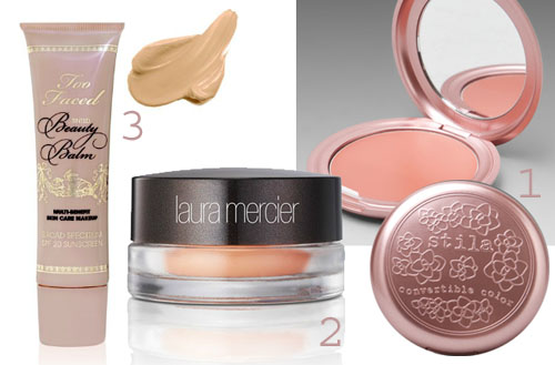 - Макияж. Что касается декоративной косметики, то здесь сплошной минимализм: чистая розовая помада, румяна Stila (1), консилер Laura Mercier (2) и её новая любовь – тональный вв-крем Too Faced beauty balm за $32 (3).