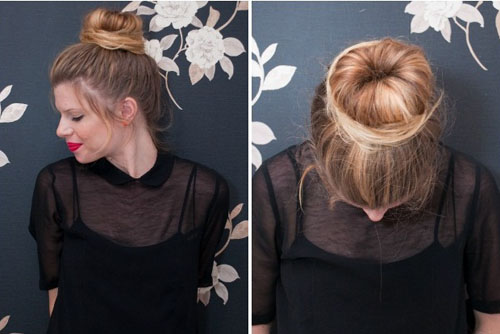 Этот способ примечателен тем, что можно сделать одну из разновидностей высокого пучка – а именно свободную, немного нарочито не опрятную. Эта тенденция популярна, не все любят идеальные волосы, иногда вид наспех сделанной прически более сексуален и привлекателен.