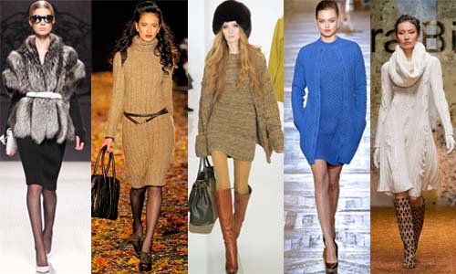 Трикотажное платье. Еще один практичный тренд - вязаное платье. Многие мужчины обожают, когда женщины наряжаются в такие платья. Материал мягко облегает и подчеркивает изгибы, у многих сразу ассоциация с домашним очагом и камином, и... ну и так далее. В общем попробуйте. Очень уютно, тепло и не менее сексуально, чем кожа и прозрачные ткани.