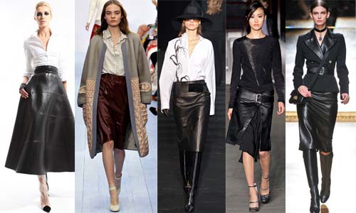 Кожаная юбка. Осенний тренд, который возвращается с наступлением холодов. Кожаная юбка выглядит очень стильно и дорого. Теплый свитер или кардиган – сдержанно и тепло, легкая блузка – необычно и женственно, двубортный жакет с ремнем помогут создать актуальный в этом сезоне стиль милитари. Выберите, какой подойдет вам?