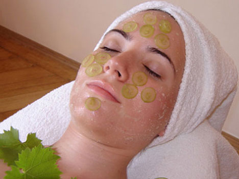 ¼ стакана винограда превращённого в пюре смешать с 2 ст. ложками кислого молока, хорошо перемешать, нанести на лицо на 20 минут.