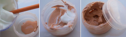 1. Смешайте жидкий тон и масло, одноразовой ложечкой или древком от кисточки. Соотношение примерно 1:4, то есть масла 4 части, жидкого тона – 1.
