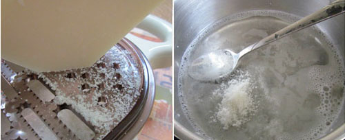 4. Сначала смесь будет жидкой как вода, но по мере остывания станет более густой. Если и после остывания смесь покажется слишком жидкой, то снова нагрейте её и добавьте ещё немного мыльных хлопьев.