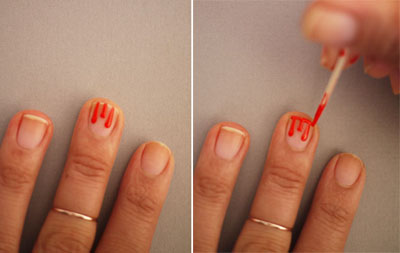 1. Понадобится красный лак и зубочистки. Не бойтесь яркого цвета. Если у Гурунга фигурирует цвет запекшейся крови, то для вечеринки возьмите ярко-алый лак, например, лак Revlon в оттенке Fearless.