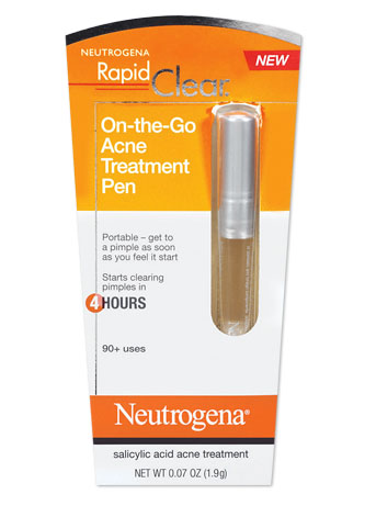 - Во-вторых, практически такие же средства локального действия, но для чувствительной кожи. Поэтому концентрация салициловой кислоты в них – не более 0,5%. Пример – стик Neutrogena Rapid Clear On-the-Go Acne Treatment Pen. Этим стиком можно тоже пользоваться несколько раз в день, наносить при первых признаках прыща. Удобно – можно брать с собой в косметичку. Другой пример – стик Benefit Cosmetics Boo Boo Zap! Medicated Acne Treatment, также предназначенный для чувствительной кожи и содержащий 0,5%-ную салициловую кислоту.