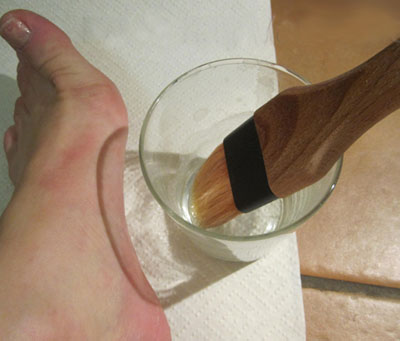 Для лечения мозолей нужно не так много: всего 2 г салициловой кислоты и 4 г этилового спирта. Смешайте ингредиенты. Аккуратно, чтобы смесь не попала на здоровую кожу! Чистой сухой кистью возьмите смесь и нанесите на проблемные места на подошве ног. Сверху оберните целлофаном и наденьте носки. Оставьте так, по крайней мере, на 2 часа. Затем можно смыть.