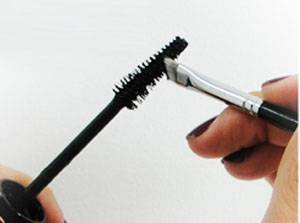 1. Возьмите некоторое количество туши для ресниц на щеточку.