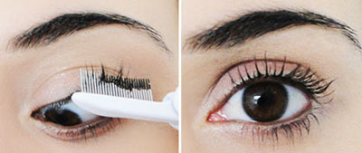 2. Щеточкой-расчетской расчешите ресницы. Вы увидите, что лайнер остался на ресницах, окрасив их.
