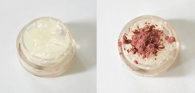 Вариант второй – более вдумчивое домашнее экспериментирование. В любом случае, принцип один – нужно смешать кремовую основу с рассыпчатыми тенями. В качестве кремовой основы лучше всего использовать вазелин – он покрывает кожу, но не сильно впитывается, результат получается глянцевый, это подходит для губ. Для румян можно воспользоваться обычным увлажняющим кремом для лица или кремом для глаз, матовый результат здесь вполне уместен.