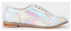 Ещё в прошлом сезоне обычные Оксфордские ботинки стали ярче: на цветной подошве или с цветными элементами. А в этом сезоне особый шик – ботинки с голографическим эффектом. Советуем прикупить: