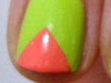 Шаг 4. Закрасьте получившийся треугольник ярко-розовым или коралловым лаком. Смело заходите кисточкой на скотч. Здесь используется лак Essie, ярко-коралловый оттенок tart deco.