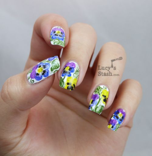 Кстати, анютины глазки - прекрасный элемент нейл-дизайна для весеннего маникюра! Вот несколько примеров:
