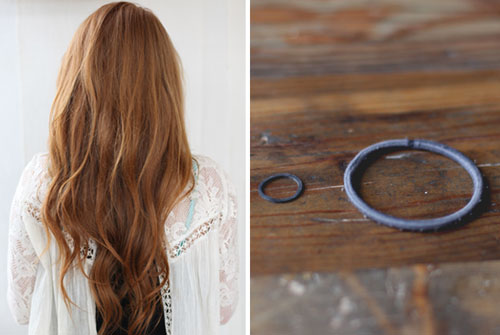 Предлагаем интересный и остроумный секрет. Лучше всего этот прием работает на волнистых волосах (если прямые, то можно завить), средних или длинных. Понадобятся также две резинки для волос.