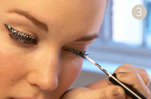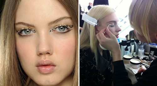 Эту идею предложили бьюти-эксперты портала R29. Смотрится легко и забавно. Девушка с такой подводкой привлекает и запоминается. И если подводка с глиттером требует продуманного макияжа, какой был на показе Chanel Fall 2013, то подводка в крапинку – это летний и повседневный вариант.
