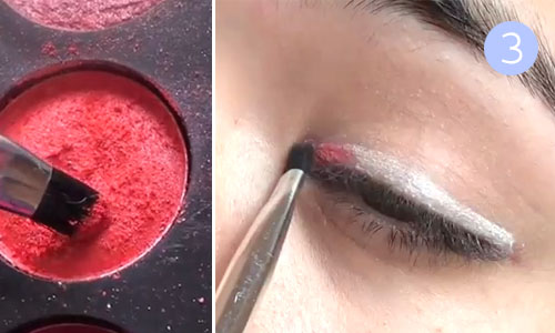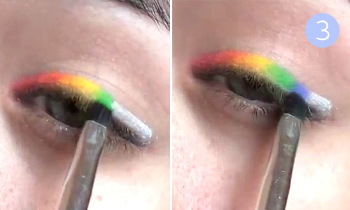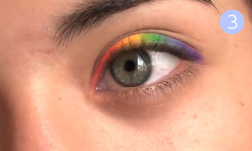 Шаг 3. Вспоминаем детскую считалочку «Каждый охотник желает знать, где сидит фазан», и начинаем покрывать белый лайнер цветными тенями в соответствии с цветами радуги. Сначала – красные тени,