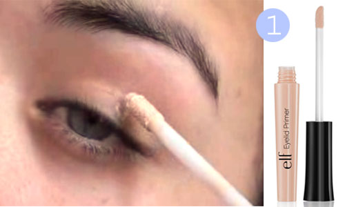 Шаг 1. Нанесите праймер для теней на всю поверхность века. Растушуйте пальцами.