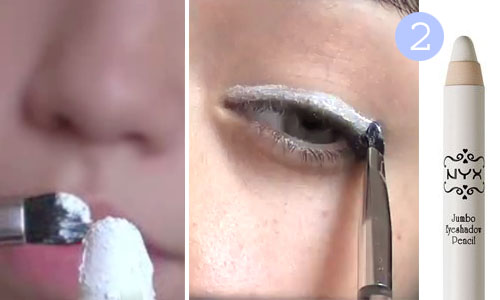 Шаг 2. Белый лайнер. Это нужно для того, чтобы яркие цвета теней оставались чистыми. Если их наносить непосредственно на кожу, то они будут более тусклыми, чем по белой базе.