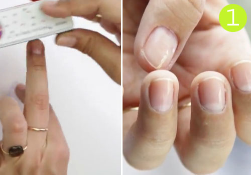Шаг 1. Французский маникюр привнес особое отношение к качеству ногтевой пластины и уходу за кутикулой. Не стоит игнорировать эту часть процесса. Поэтому начните с тщательного опиливания и полировки ногтей. Для этого лучше иметь набор пилочек или одну универсальную пилку с различной зернистостью. Зернистой пилочкой обработайте край ногтей, придав нужную вам форму. А полирующей поверхностью отполируйте, чтобы ногти блестели.