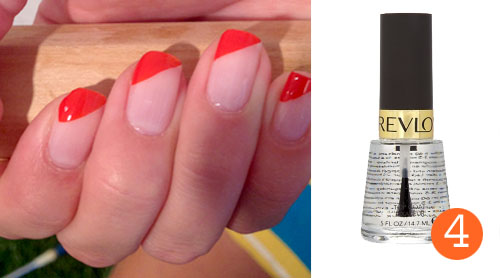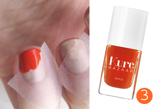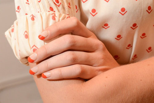 Шаг 3. Выберите яркий оттенок лака для ногтей (оранжевый, коралловый, любой неон). Закрасьте край ногтя. Можно использовать на каждом ногте свой оттенок лака.