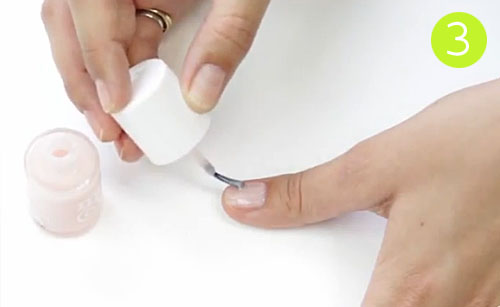 Шаг 3. Нанесите 1-2 слоя лака оттенка nude. Дайте высохнуть.