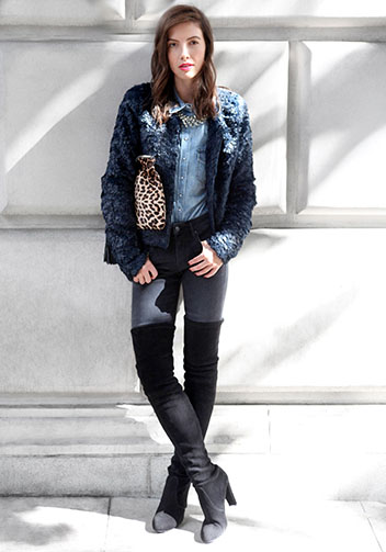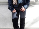 Не любите мини? Тогда наденьте с ботфортами джинсы. В идеале это должны быть обтягивающие джинсы с плотной посадкой из материала стрейч. И если желаете зрительно удлинить ноги, то под черные ботфорты выберите не голубые, а серые джинсы. Такой прием создает иллюзию очень длинных ног.