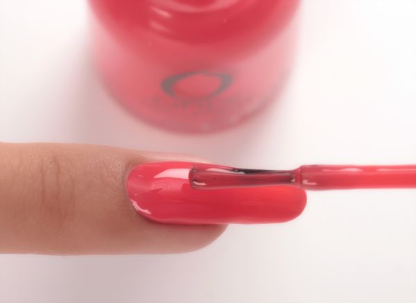 2. В качестве фона для дизайна используйте розовый лак Teeny Bikini (№ 40705). В два слоя покройте им ноготь.