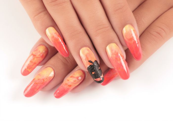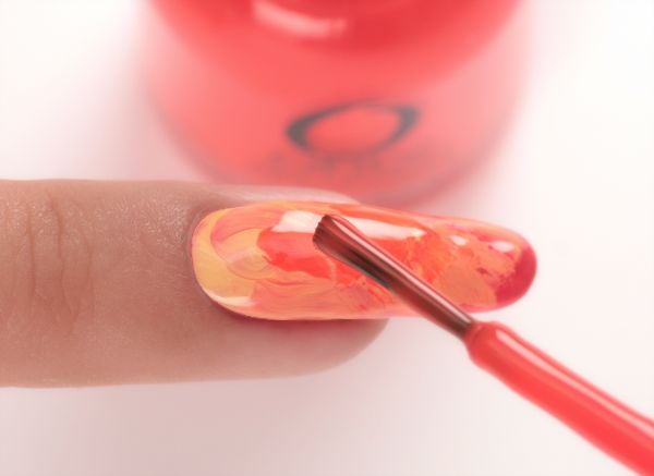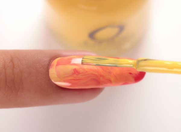 4. Для создания эффекта плавного перехода оттенков, центральную часть ногтя затонируйте оранжевым лаком Orange Punch (№ 40463).
