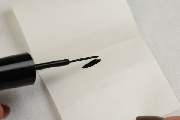 1. Капните немного черной краски для дизайна на глянцевую сторону бумаги из-под формы. Сложите её пополам и слегка разотрите.