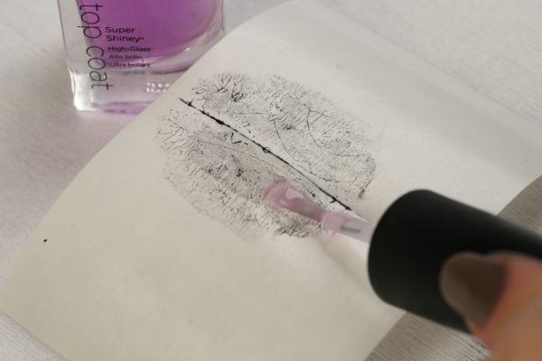 2. Разверните лист. На нём должен образоваться необычный симметричный узор. Когда краска высохнет, покройте её тонким слоем средства Super Shiney от CND.