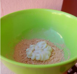 Шаг 1. Начните процесс с того, чтобы высыпать в пустую миску немного пудры.
